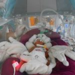 Trochu to zkrátím, protože popisovat můj 2měsíční pobyt na P3 rizikového těhotenství by dalo na román. Oslavila jsem tam narozeniny, výročí svatby a jiné oslavy, které jsem daleko od rodiny prožívala velmi těžce.  Spoustu těžkých a psychicky náročných rozhodnutí jsem musela dělat sama. Na P3  jsem zažila ještě další  3 operace – upouštěli mi plodovou vodu, dělali cerkláž a miminku A dávali transfůzi přes pupečník a k tomu každý den odběry krve a ultrazvuk. Anesteziologové si chodili losovat, kdo mi každý 3 den bude píchat kanylu, ruce jsem měla v horším stavu jak člověk, co bral X let drogy.  Každý den mne drželi o hladu až do odběrů krve (měla jsem velké problémy s játry po kortikoidech) a utz.
