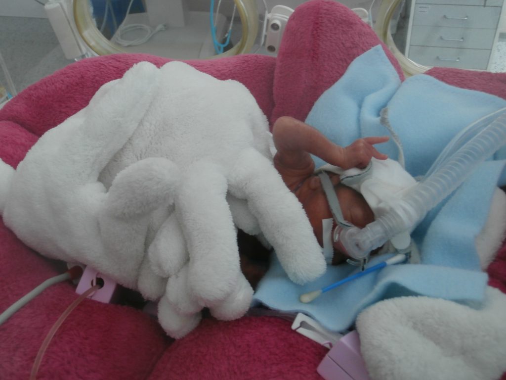 V lednu jsem zjistila, že jsem těhotná. Celé těhotenství bylo ve znamení úporných nevolností, pak se přidalo brnění rukou tak velké, že jsem neudržela téměř ani nůž, tužku. Když jsem se cítila během května mnohem lépe, přišel blesk z čistého nebe. Dne 18.května jsem odjela do porodnice s podezřením na odtok plodové vody. Byla jsem 22+3 tt. Ocitla jsem se ze dne na den v nemocnici s hroznými myšlenkami. Jakoby se mi zhroutil celý svět. Co bude dál? Během první noci v nemocnici mi odtekla téměř všechna plodová voda, lék. anhydramnion. Zřejmě nějaká infekce. Lékaři čekali, že nastane potrat. To se však nestalo. Nikdo to asi moc nechápal a nejvíce já a moje rodina. Byli jsme v bolestné situaci. Já musela jen čekat a čekat, co nastane. Prožívala jsem asi nejhorší dny svého života. Noci i dny jsem probrečela, neboť šance na záchranu miminka byla mizivá. Myslela jsem si, že se zblázním. Hlava byla plná otázek, srdce plné beznaděje. Pak mi napsal jeden úžasný človíček z Brna, že musím věřit, uklidnit se a dávat sílu děťátku. Bylo to velmi těžké. Také maminka a manžel mě podporovali. První týden byl krutý. Mohla jsem jen ležet, plodová voda se dotvářela, ale také stále odtékala. Druhý týden jsem pomalu sbírala své poslední síly, a když plod dle ultrazvuku překročil 24. týden, začala jsem doufat. Poslouchala jsem svou relaxační hudbu, modlila se a celé hodiny meditovala, aby tělo i mysl byly co nejvíce v klidu. Také jsem si stále a stále pročítala webové stránky NEDOKLUBKA, kde mě držely nad vodou podobné příběhy jako je ten náš.
