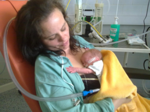 V pondělí 1. Dubna 2013 jsem z ničeho nic začala pociťovat zvláštní tlak v břiše a po několika hodinách i kontrakce. To už mě můj manžel vezl do kroměřížské nemocnice na porodní oddělení. Lékař, který mě vyšetřil, nám sdělil, že naše děti nemají v podstatě žádnou šanci na přežití. Dle jeho názoru byl nejvyšší čas na patřičné kroky pro mou záchranu. Pamatuji si, že manžel toto za žádnou cenu nechtěl přijmout a ptal se na další možnosti. Doktor celou situaci v podstatě vzdal a až teprve na nátlak manžela zavolal do zlínské nemocnice. Tamní lékaři si vyžádali můj okamžitý převoz. Bylo nám od samého začátku jasné, že situace je opravdu velmi vážná a že v nebezpečí nejsou jen naše děti, ale i já. Přesto jsem byla ochotná zkusit cokoliv, co by pomohlo naše syny zachránit. Po převozu do Zlína a nezbytném vyšetření nám doktor porodnického oddělení podrobně vysvětlil, jaké kroky nás čekají, jak vážná je situace a také co všechno se může stát… Řeknu Vám, v ten okamžik, když člověk slyší, co vše se může přihodit, co vše může ovlivnit život našich andílků, to bylo velmi bolestivé. Ale s odstupem času jsme za to rádi. Vzpomínám si, že jsme s manželem nebyli vůbec schopni pobrat tu spoustu odborných lékařských termínů. Spoustě věcí jsme vůbec nerozuměli, ale lékaři nám vše ochotně a hlavně trpělivě vysvětlovali (někdy i několikrát…). Získali si naši naprostou důvěru. Takřka ihned po převozu mi byly nasazeny léky pro podporu vývinu plic u chlapečků. Z toho důvodu bylo velmi nutné oddálení porodu o co možná nejdelší dobu tak, aby plíce byly připravené, což byla základní podmínka pro jejich přežití…. Po 12 hodinách jsem porodila císařským řezem naše syny Ondráška a Davídka s porodní váhou 630 a 650g a výškou 30 a 31 cm. Dodnes je máme s manželem před očima, jak tam leželi v inkubátorech zabalení do přikrývek s miniaturními čepičkami. Oba byli připojeni na ventilátory, které jim pomáhaly s dýcháním. Podle lékařů byl na tom lépe Davídek, který, jak se zdálo, byl stabilnější. Od té chvíle jsme se o ně začali bát ještě mnohem víc. Bylo to nejspíše tím, že byli tak malincí, tak zranitelní. Z každého pohledu ať doktorů, nebo sester jsme se snažili vyčíst, jak na tom naši chlapečci jsou. V každé vyřčené větě jsme hledali něco pozitivního a z toho jsme pak „žili“, to nám dávalo sílu dál věřit.